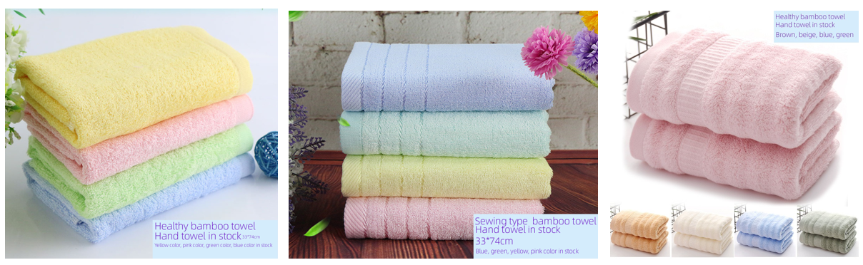 These 3 kinds bamboo towels have hand towel in stock, can support you with multi color. Both of them have very good water absorption & antibacterial function.