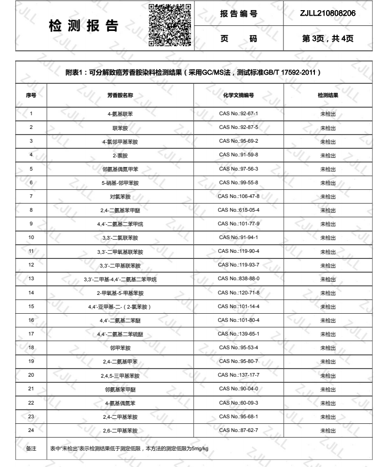 Not have Decomposable Carcinogenic Dyes Formaldehyde,pH, Perspiration color fast,ect. all passed